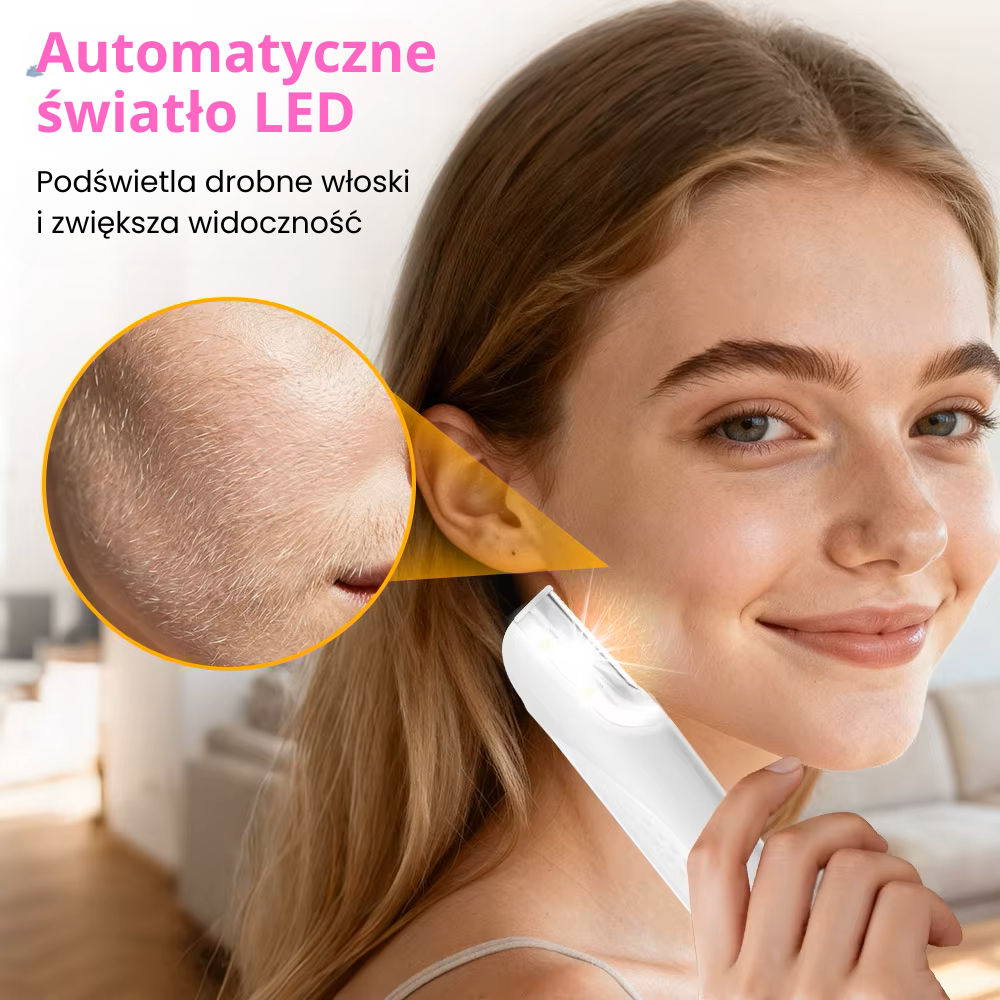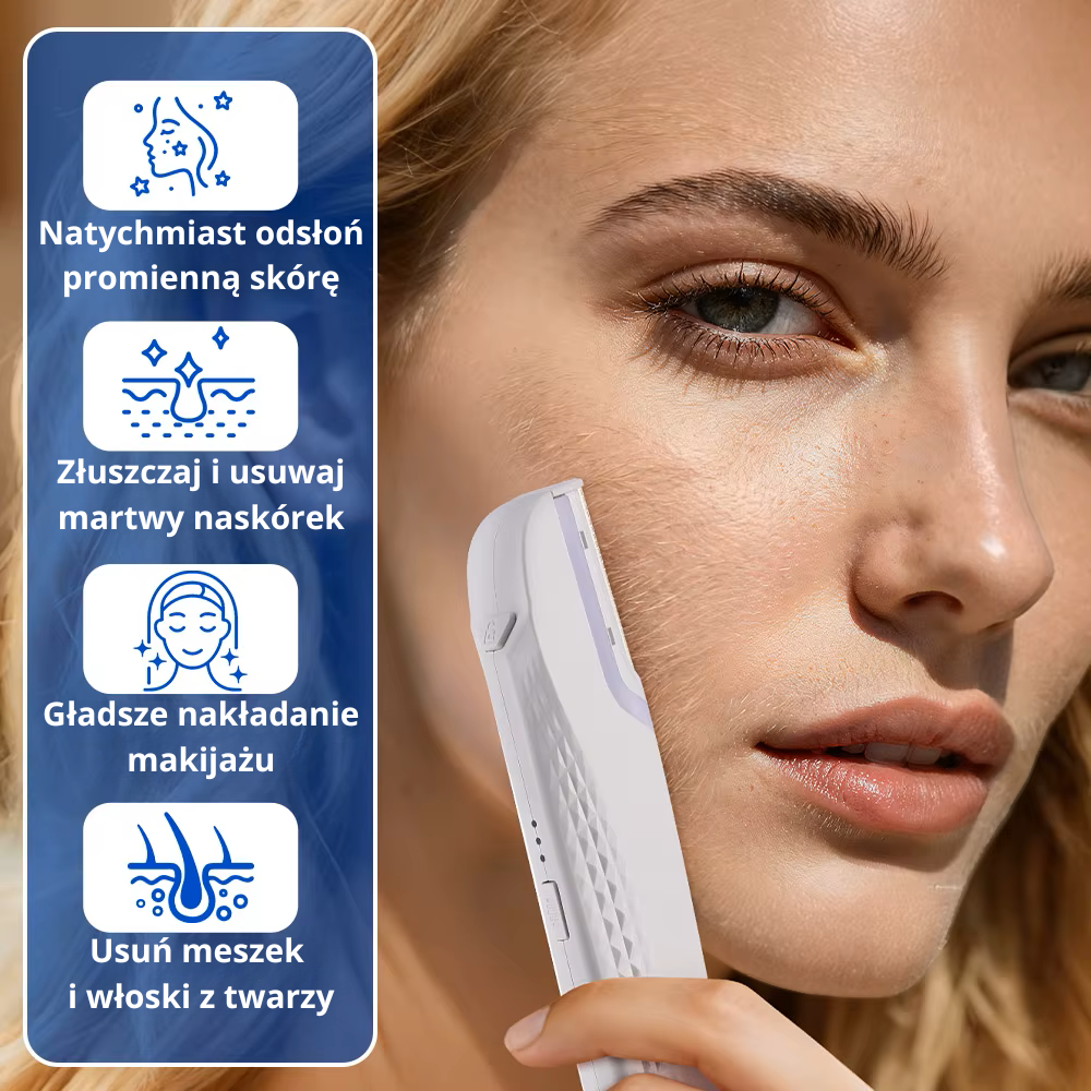 Osiągnij idealnie gładką skórę, usuń meszek i odsłoń naturalny blask bez bólu i bez podrażnień — bez kosztownych zabiegów w gabinecie.